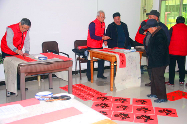 送春聯(lián)活動由地礦集團(tuán)公司、地礦集團(tuán)公司老干部志愿者服務(wù)隊(duì)主辦,陜西地礦老干部書畫志愿者服務(wù)隊(duì)、九O八地質(zhì)大隊(duì)承辦。本次活動計(jì)劃從1月22日開始到2月12日結(jié)束,共為14個(gè)單位送春聯(lián)4300余幅,書畫作品300余幅。集團(tuán)公司希望通過此次活動搭建離退休職工為地礦事業(yè)改革發(fā)展增添正能量的平臺,進(jìn)一步豐富離退休職工業(yè)余文化生活,讓離退休老同志度過一個(gè)歡樂祥和的春節(jié)。