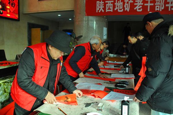 2月9日訊 陜西地礦老干部書畫志愿者服務(wù)隊(duì),在集團(tuán)公司總部辦公樓一樓大廳為總部員工新春送春聯(lián),送祝福。