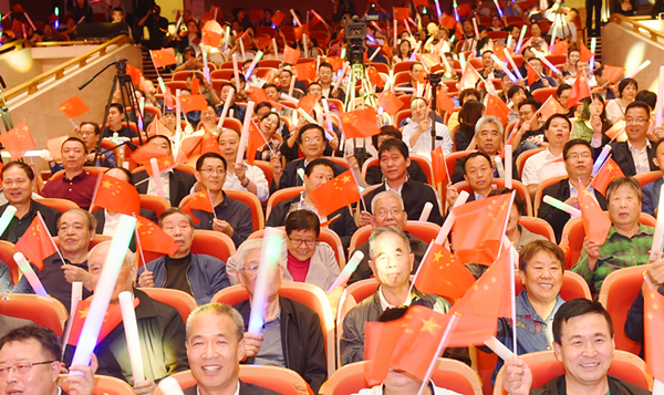 情景表演《歲月如歌》,歌舞《我們的幸福生活》《我愛你中國(guó)》《美好新時(shí)代》,舞蹈《追夢(mèng)》《出水蓮》《茉莉花》《絲路霓裳》《燃青春》,熱情謳歌黨,謳歌祖國(guó),謳歌人民?,F(xiàn)場(chǎng)觀眾舞動(dòng)手中的國(guó)旗,人民劇院成了一片紅色的海洋。