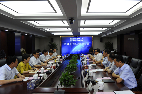 江蘇省地礦局黨組成員、副局長戴斌,副巡視員陳興賢,陜西地礦集團(tuán)副總經(jīng)濟(jì)師,雙方有關(guān)處室(部門)、所屬單位負(fù)責(zé)人見證簽約儀式。
