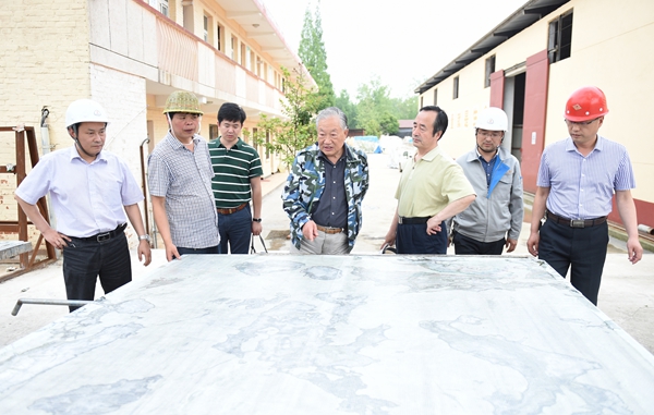 14日下午,老部長一行返回漢中,顧不上休息片刻,徑直來到漢元公司桃花店玉石加工廠,走進生產(chǎn)車間檢查石材加工流程,進入加工車間觀看玉石加工工藝,并向隨行的漢中隊負責同志仔細詢問玉石、板材的生產(chǎn)和銷售情況。看到件件溫潤光滑、晶瑩剔透的玉雕,老部長欣然為公司揮毫題詞:“米倉深處藏香玉”。