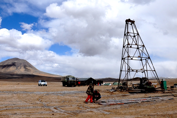 2012年,項(xiàng)目鉆探工作遇到前所未有的困難。由于交通條件太差,加之高原缺氧,原先干過的鉆探隊(duì)再也不去了。時(shí)任所長張占武聯(lián)系了所有能聯(lián)系的鉆探隊(duì)伍,都沒有人愿意干。只有自己組織隊(duì)伍了。在青海省雇傭了一批鉆探人員,租賃了3臺(tái)鉆機(jī)。筆者主動(dòng)承擔(dān)了工作任務(wù),和年輕的項(xiàng)目負(fù)責(zé)閆磊一起,帶領(lǐng)大家,克服難以想象的困難,把人員、鉆機(jī)運(yùn)送到工區(qū)。要開鉆了,我們買了鞭炮、蠟燭、水果、豬頭,祭拜莊嚴(yán)的昆侖山。缺氧的高原、無休止的大風(fēng),放置在雪地里的蠟燭,點(diǎn)了十幾分鐘也沒成功。在內(nèi)地震耳欲聾的鞭炮,在昆侖點(diǎn)燃后,也如同麥秸燃燒一般了無生氣。