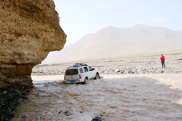 此波險(xiǎn)情過后,行進(jìn)到目的地已是第六天。地圖上標(biāo)注的水源地、河流都是季節(jié)性的。當(dāng)時(shí)冰雪尚未消融,沒有飲用水咋辦?帶的瓶裝水所剩無幾,項(xiàng)目當(dāng)即決定下山。由于一周時(shí)間沒有獲得正常飲食和休息,大家都已經(jīng)到了生理極限。第七天,每人只剩一瓶水。沒有道路,車輛行進(jìn)十分困難,幾乎是走幾步就要挖路墊石頭,一百多公里的路走了兩天。這天傍晚,終于到了山口,大家十分興奮,有人說,到民豐縣吃烤肉。我也興奮地拿出相機(jī)拍照慶祝。沒想到后面的70公里沙漠,又給大家結(jié)結(jié)實(shí)實(shí)地上了一課。陷車、挖車、陷車、挖車……,第二天早晨到達(dá)民豐后,大家倒頭就睡,再也沒有人說想吃烤肉了。