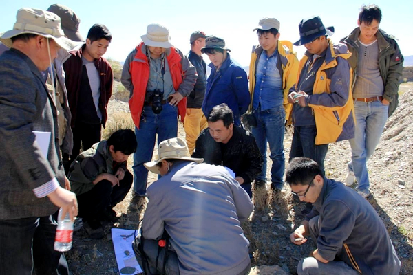 該項目工作區(qū)位于青藏高原東北緣柴達(dá)木盆地北緣,海拔3500-4600米。項目組積極與中國地質(zhì)調(diào)查局西寧、格爾木野外工作站聯(lián)系,克服高寒缺氧、道路和通信不暢、食宿不便、外部環(huán)境差等不利因素,發(fā)揚地質(zhì)工作者的“三光榮”精神,高度重視安全生產(chǎn),扎實開展野外調(diào)查工作。項目組技術(shù)人員經(jīng)過3年的奮戰(zhàn),將測區(qū)前人劃分的晚泥盆世流紋斑巖厘定為一套以安山巖、粗安巖、粗面巖、沉凝灰?guī)r等為主的陸相火山巖組合,對比厘定為晚泥盆世牦牛山組;從哈牙其北部的早石炭世城墻溝組下部新解體出以礫巖夾長石石英砂巖為主體的阿木尼克組;對前人劃分的古元古代達(dá)肯大坂巖群進(jìn)行了解體,新解體出兩套花崗片麻巖,原巖為似斑狀二長花崗巖和花崗閃長巖,在花崗片麻巖中獲得2388±27Ma的鋯石U-Pb年齡;在石底泉南山變輝長巖中獲得2469±16Ma的鋯石U-Pb年齡,確定有古元古代早期強烈的構(gòu)造巖漿活動;初步查明了宗務(wù)隆強變形帶的物質(zhì)組成、結(jié)構(gòu)構(gòu)造和變質(zhì)變形特征;通過1∶5萬高精度磁法測量,劃分4個磁異常區(qū)帶,圈定磁異常20個,對其中6個磁異常進(jìn)行了檢查;新發(fā)現(xiàn)金銅礦(化)點13處,煤礦點3處。