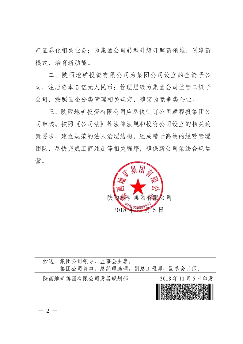 ↑上一篇:關于成立陜西地礦環(huán)宇礦業(yè)股份有限公司的通知