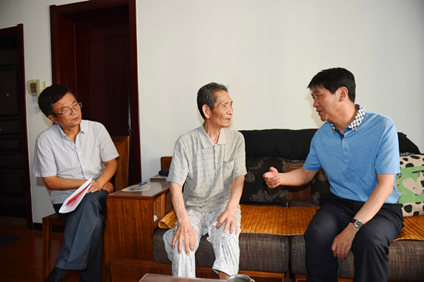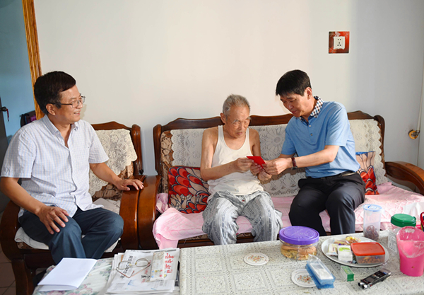 趙廷周一行先后來到居住在總部大院同一棟樓的80多歲高齡的老黨員曹如意、謝吉林家中,關(guān)切地詢問老人的身體健康狀況和生活情況,了解子女的工作情況,向他們介紹了集團(tuán)公司七一組織黨員接受紅色教育活動情況,同時叮囑老人保重身體、安享晚年,并為兩位老人送上了慰問金。
