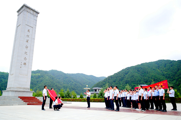 在馬欄革命紀念碑前,面對鮮艷的黨旗,集團公司領導和機關黨員重溫入黨誓詞。鏗鏘的誓言,響徹在這片紅色土地的上空,宣示出集團公司領導和機關黨員“不忘初心、牢記使命”,為黨的事業(yè)忠貞不渝、奮斗終生的決心。