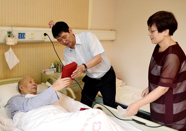 總公司其他領導齊文、吳學海、劉建勤、張軍、潘發(fā)明每到一處看望慰問,一進門就緊握住這些離休干部的雙手,詳細詢問他們的身體和生活情況,向他們曾為革命事業(yè)作出的貢獻表示敬意和感謝,并送上“中國人民抗日戰(zhàn)爭勝利70周年”紀念章和慰問金,祝他們和家人生活幸福、身體健康。