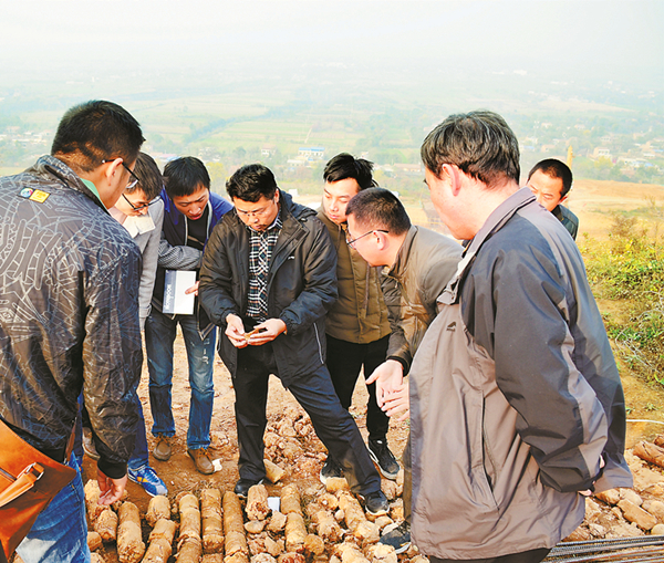 圖為有關(guān)負(fù)責(zé)人正在為專業(yè)技術(shù)人員進行野外實地講解。