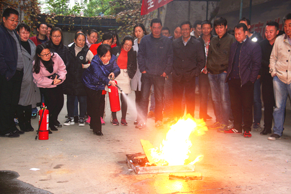 培訓(xùn)結(jié)束后,在辦公樓后院進(jìn)行了滅火演練。