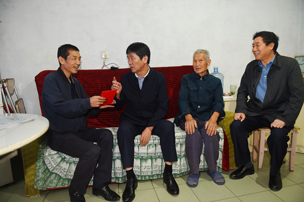 趙廷周一行首先來到物化探隊(duì)隊(duì)部,看望慰問了復(fù)轉(zhuǎn)軍人許朝陽(yáng)同志和他的家人。他了解到許朝陽(yáng)同志自1989年轉(zhuǎn)業(yè)到物化探隊(duì)工作至今,工作、生活穩(wěn)定,女兒已上大學(xué),由衷地感到欣慰。當(dāng)?shù)弥S朝陽(yáng)同志年逾八旬的老父親也是位復(fù)轉(zhuǎn)軍人時(shí),他高興地拉著老人的手噓寒問暖,“好呀,我今天看望慰問你們兩代軍人、兩代地質(zhì)人。”同時(shí)送上慰問金。