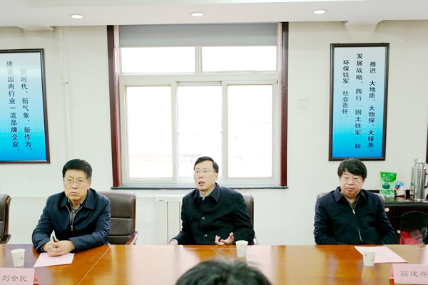 魏增軍詳細(xì)了解了地礦集團(tuán)公司系統(tǒng)2017年的發(fā)展情況,對地礦集團(tuán)公司積極實(shí)施轉(zhuǎn)型升級(jí)“三大戰(zhàn)略”,全力打造“三個(gè)地礦”給予充分肯定。魏增軍強(qiáng)調(diào),一是要在繼續(xù)發(fā)揮好基礎(chǔ)性、公益性、戰(zhàn)略性地質(zhì)服務(wù)作用的同時(shí),堅(jiān)定信心,提振精神,沿著企業(yè)化的路子持續(xù)走下去。二是要堅(jiān)持綠色發(fā)展理念,保護(hù)好我們的綠水青山。在傳統(tǒng)地質(zhì)項(xiàng)目減少的情況下,積極謀求轉(zhuǎn)型發(fā)展,向新能源和民生地質(zhì)轉(zhuǎn)型。三是在發(fā)展思路上,既要有長期項(xiàng)目,又要有短平快項(xiàng)目,要長短結(jié)合,保證企業(yè)發(fā)展的平衡性和穩(wěn)定性。四是要保持地礦隊(duì)伍的和諧穩(wěn)定。人心是決定一切的因素。要讓大家都有活干,都有飯吃,把干部員工的人心凝聚起來,增強(qiáng)隊(duì)伍的向心力和戰(zhàn)斗力。魏增軍向物化探隊(duì)送去了慰問金,也送去了省委省政府的親切關(guān)懷。希望物化探隊(duì)在新的一年里,工作有新的起色和更大進(jìn)步。