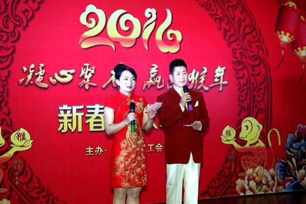 2月1日晚,物化探隊(duì)舉辦了以“凝心聚力、攻堅(jiān)克難、 贏戰(zhàn)2016”為主題的“迎新春”職工聯(lián)歡晚會(huì)。地礦總公司副總經(jīng)理、工會(huì)主席白林科出席晚會(huì)并講話。隊(duì)長(zhǎng)王新坪、黨委書記賀志銀及班子其他成員、晚會(huì)演出人員、在隊(duì)職工及部分家屬共計(jì)100余人歡聚一堂,共迎新春佳節(jié)。
