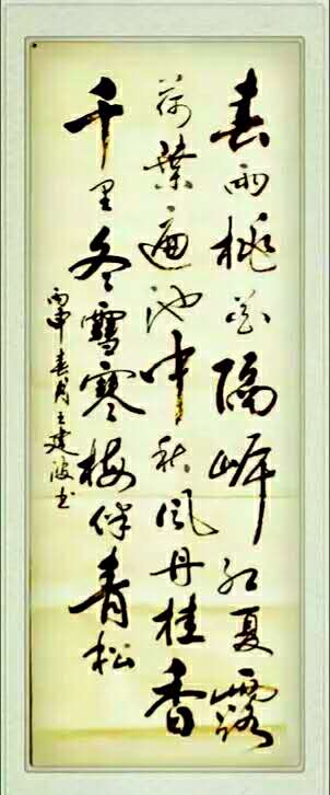 王建波,男,1952年生于西安臨潼,筆名王爽,自號(hào)琴書堂主人。陜西省老年書畫學(xué)會(huì)理事,陜西省楹聯(lián)學(xué)會(huì)會(huì)員,西安市老年書畫研究會(huì)理事,臨潼區(qū)老年書畫學(xué)會(huì)會(huì)長,西安驪東文學(xué)書畫藝術(shù)院顧問,陜西地礦老年人書畫協(xié)會(huì)名譽(yù)會(huì)長。其書法作品曾多次被陜西《三秦書畫》、西安《古都書畫》和《臨潼文藝》等報(bào)刋選登,先后多次在省、市、區(qū)書展中獲獎(jiǎng)并被收藏。