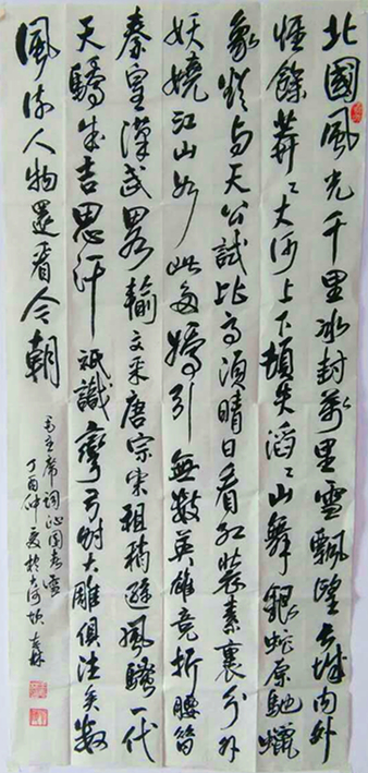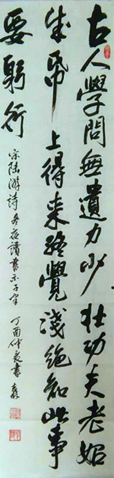 學(xué)書(shū)體會(huì):我在中學(xué)時(shí)期就比較愛(ài)練字,加之野外工作業(yè)余生活比較枯燥無(wú)聊,空閑時(shí)別人喜歡打麻將,閑逛,因?yàn)槲倚愿褫^內(nèi)向,不善于吹牛和閑諞,于是就找來(lái)字帖練字。最開(kāi)始練的是柳體玄秘塔碑。1985年我報(bào)名參加了長(zhǎng)安書(shū)法函授學(xué)校笫一期初級(jí)班書(shū)法函授學(xué)習(xí),兩年后又參加了書(shū)法提高班的函授學(xué)習(xí),至今已三十多年矣。