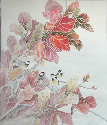 我于2005年開始學(xué)畫,2006年秋在西安老年大學(xué)松園分校學(xué)習(xí),主要是跟張?jiān)吕蠋煂W(xué)工筆花鳥。2010年又在西安教育學(xué)院老年大學(xué)跟魏?jiǎn)ⅰ⒑椴ɡ蠋煂W(xué)習(xí)人物、山水、花鳥。