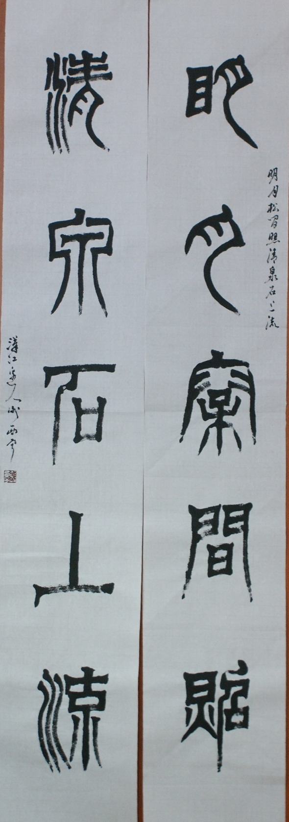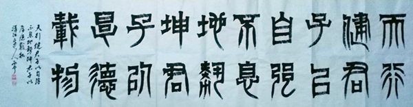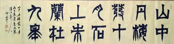 必須走一條自己的路,這是西寧明智的抉擇。于是,他沉下心來,一頭扎進(jìn)書齋,在傳統(tǒng)的世界里自由遨游。一場艱苦的跨時光的交流,在法帖中找路,在與古人對話中磨礪開始了。這期間,真、草、隸、篆、行、楷,他無不臨習(xí),尺牘小品和大幅大字同時并筆,尤其在《爨寶子碑》、《天發(fā)神讖碑》下力最勤?!鹅鄬氉颖返墓抛?、肅穆、天真爛漫與《天發(fā)神讖碑》的篆中有隸,結(jié)構(gòu)緊斂,體勢雄強(qiáng)的特點(diǎn),不僅深深地感動了西寧,也牢牢地烙在他心中。扎實(shí)的二王為代表的帖子基礎(chǔ),加之以《爨寶子碑》、《天發(fā)神讖碑》為代表的碑學(xué)精髓,使得西寧的書法出現(xiàn)了新面目,其他作品下筆有由,厚重大氣,自然天成,看到了本真的自我。