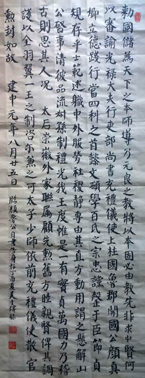 2、逐步摸索掌握顏魯公執(zhí)筆手勢(shì)和運(yùn)筆方法。 了解到顏體的字形結(jié)體之后,我在臨帖時(shí)就特別注意《祭侄文稿》的字形規(guī)律,尤其是行筆和執(zhí)筆狀態(tài)。顏魯公寫祭文時(shí)為情所控,激動(dòng)和悲愴的情感使他行筆較快,多處出現(xiàn)虛白、涂抹、修改。所以寫字時(shí)順勢(shì)而下,自然流暢,妙筆迭出,成為書法史上之絕唱。所以,臨寫時(shí),在掌握行筆、字形的同時(shí),有一定速度非常重要。