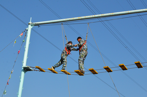 拓展訓練前,有針對性地進行了名為“信任隊友”的開訓儀式。通過一系列歡快的活動,打破了人與人之間的隔閡,建立起相互信任的基礎。訓練開始后,基地教練將參訓員工分為四組,前兩組進行了真人CS對戰(zhàn),讓員工在體驗中放松自己,在真實對抗情境中激發(fā)出勇氣謀略和信念,增強集體意識和團隊責任心。后兩組進行了緬甸橋(高空走鋼絲)、木屐行走等項目,進一步增強了自信心和相互之間的信任,培養(yǎng)了樂于與人相處共事的積極態(tài)度。
