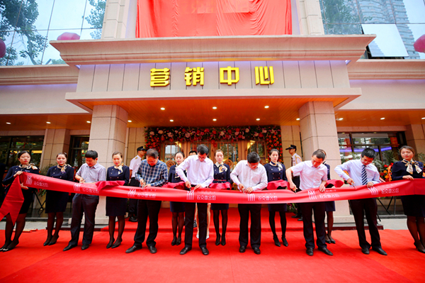 10時35分,出席儀式的各位領(lǐng)導(dǎo)為營銷中心開放剪彩。